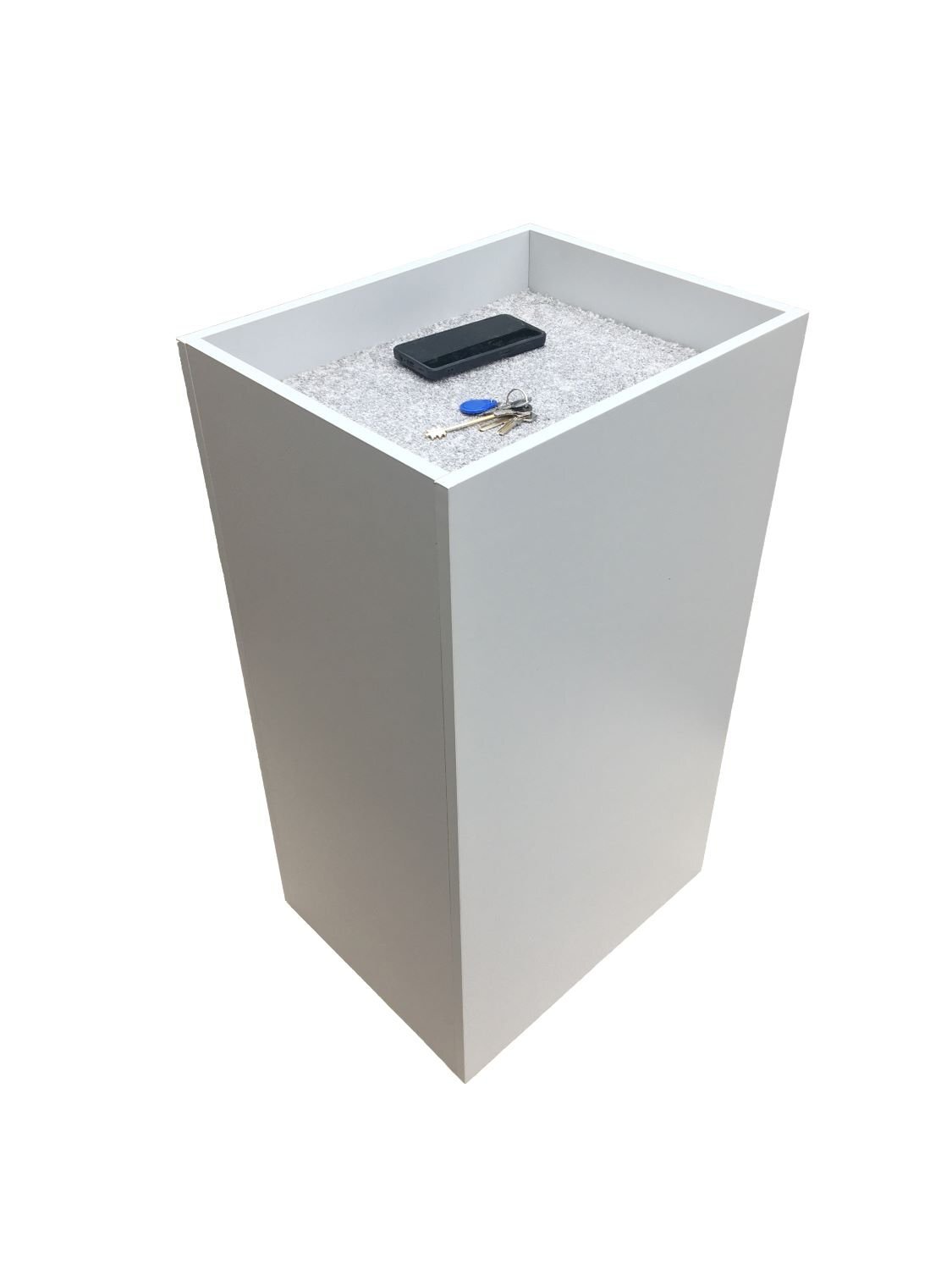Стол (тумба) для досмотра предметов личного пользования при проходе через металлодетектор. Изготовлена без использования металлических крепежных элементов. Мягкое покрытие, удобные борта, 500х400х950 мм. Материал - ДСП, цвет - серый, вес 20 кг.