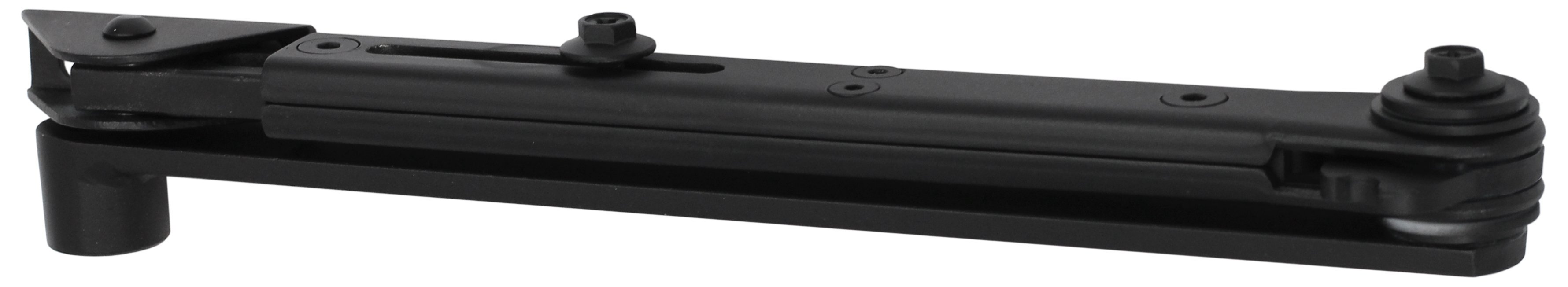 Тяга состоит из двух неразъёмных плеч: основная часть имеет длину 305 мм, а регулируемая часть – 275–340 мм, что обеспечивает монтаж на дверную коробку с дверным полотном, расположенным на глубине до 45 мм.