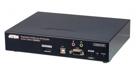 Удлинитель-передатчик, KVM USB HDMI+AUDIO+RS232, 10км при прямом подкл через SFP модуль/неогранич. через switch, 1xUTP Cat5e, 2xDP+2xUSB A-тип+USB B-тип+4xMINI JACK+2xDB9+SFP, 11xF+M, спец.шнур, макс.разр. 3840x2160, БП в комплекте, DC 5В, 9.5Вт, 0…+50°C, 215х163х41 мм.