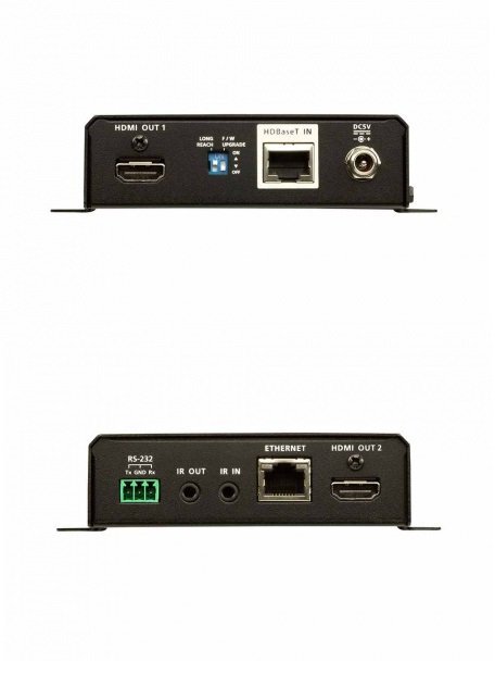 Удлинитель-приемник, HDMI+ETHERNET+RS232+IR, 100 м, 1xUTP Cat5e, 2xHDMI+RJ45+RS232+2xIR, 6xF+2x3 винта, без шнуров, макс.разр. 4096x2160/3840x2160 60Гц 4:2:0/30Hz 4:4:4 70м Cat5e/6; 100м Cat6a/1080p 100м Cat 5e/6/6a; HDCP, БП в комплекте, DC 5В, 8 Вт, 0…+40°C, 140х123х30 мм.