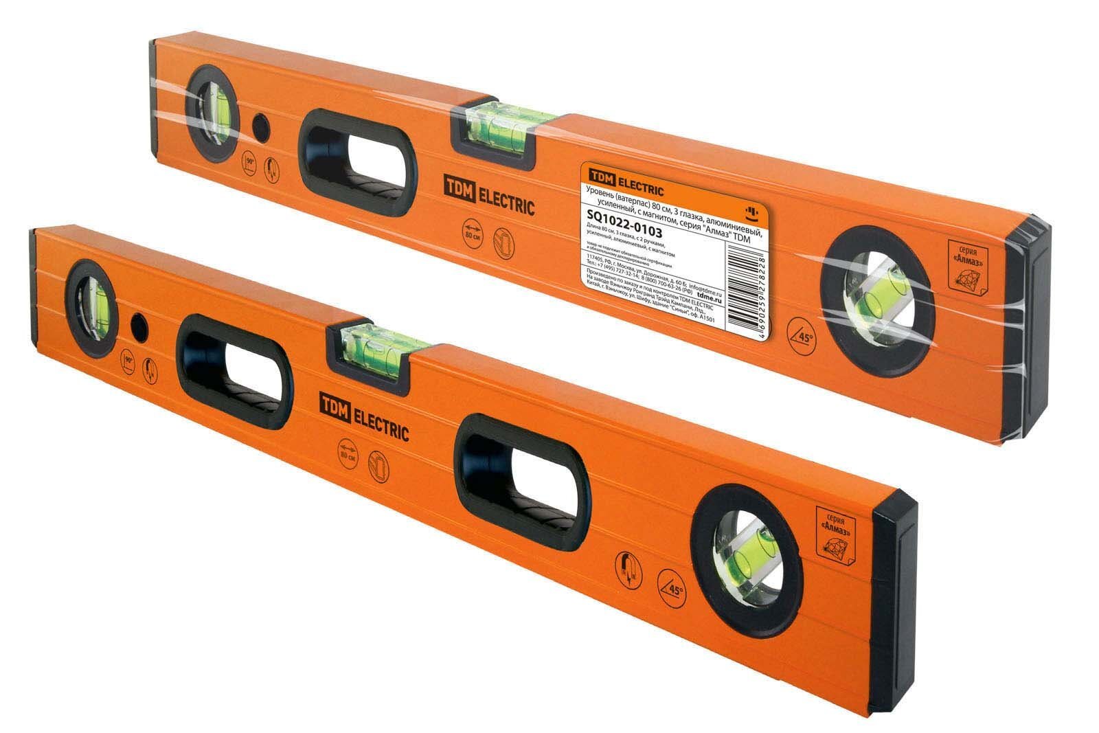 Уровень TDM ЕLECTRIC Уровень (ватерпас) 80см, 3 глазка, алюминиевый, усиленный, с магнитом "Алмаз" TDM (SQ1022-0103)