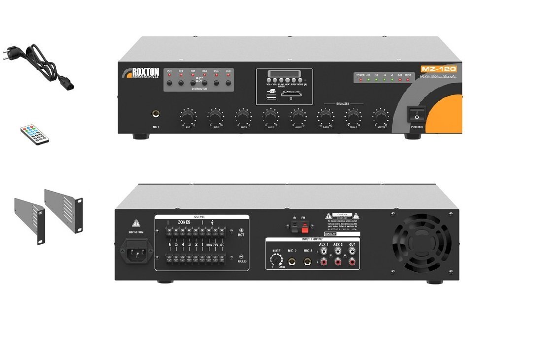 Трансляционный усилитель ROXTON MZ-120 применяется для организации систем трансляции, оповещения, фонового озвучивания и громкой связи.