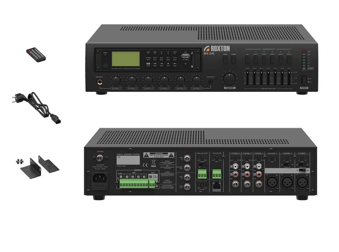 • Возможность подключения удалённой микрофонной консоли ROXTON RM-05