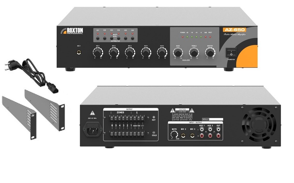 Трансляционный усилитель ROXTON AZ-650 мощностью 650Вт на 6 зон трансляции используется для создания систем оповещения и громкой связи.
