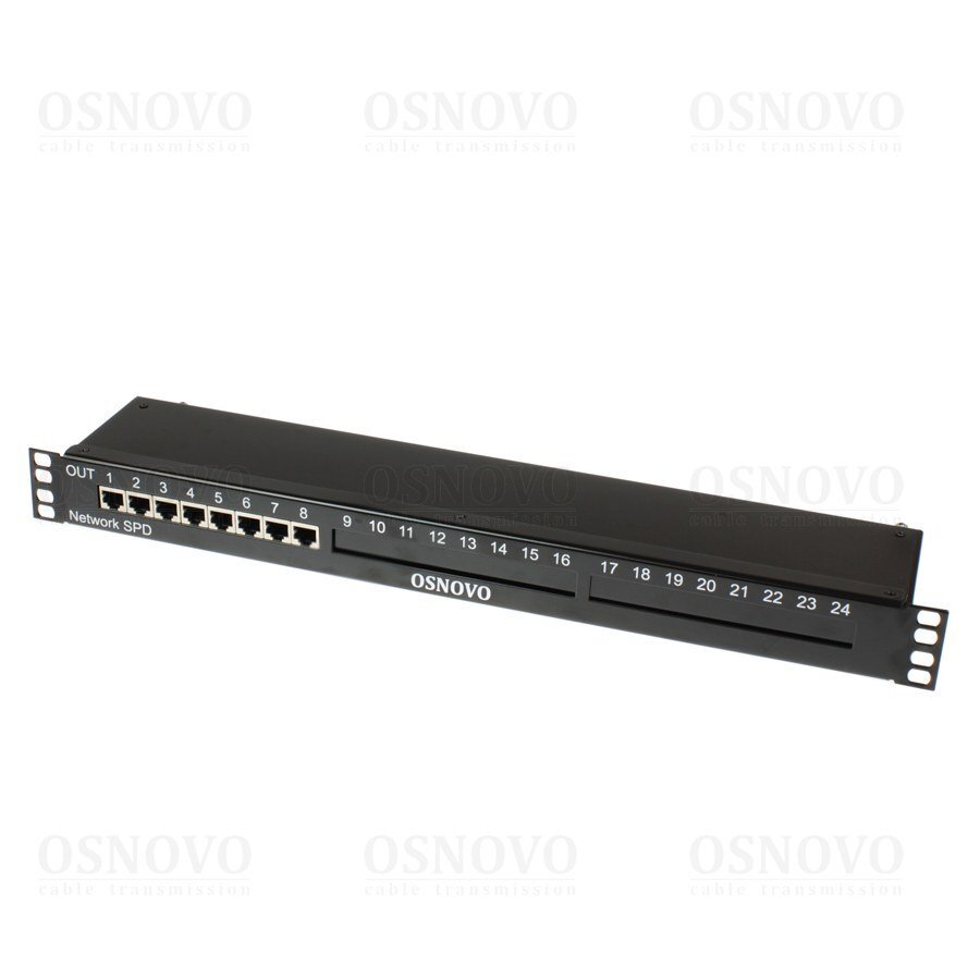 1U устройство грозозащиты для локальной вычислительной сети на 8 портов (скорость до 1000 Мб/с) с защитой линий PoE (af/at, методы A + B, контакты 1/2, 3/6, 4/5, 7/8). Двухступенчатая защита. Максимальное длительное рабочее напряжение (Uс) DC58V. Номинальный ток разряда (8/20 мкс, In) 2,5kA. Суммарный ток разряда (8/20 мкс, Itotal) 20kA. Время отклика 1нс. 8 входов (RJ45-мама), 8 выходов (RJ45-мама). Монтаж в 19" стойку (1U); 487x102x44,5мм; -40…+80°С.