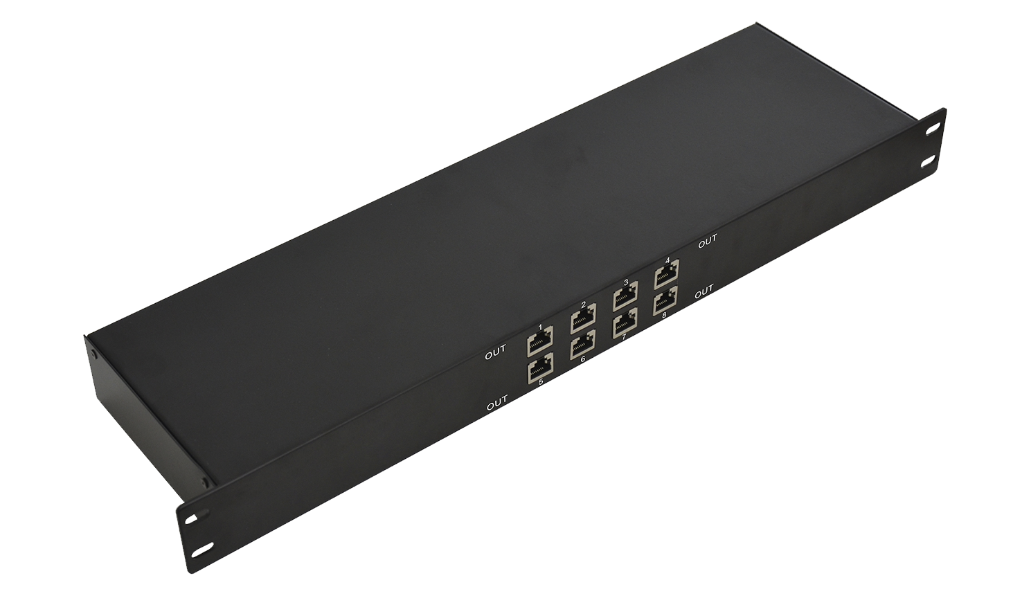 Устройство грозозащиты линий Ethernet с РоЕ, на 8 портов, 1U; ток разряда 2.5 кА ном/5кА макс(8/20 мкс), защищаемые контакты: 1/2/3/6; 4/5/7/8, вход/выход: RJ45 1х10/100/1000Мб/с; монтаж в 19" стойку; защита линии PoE IEEE802.3af/at; рабочее напряжение в линии данных 5/48В ном, 6/60В макс, -40...+80°C, 484х130х45 мм.
