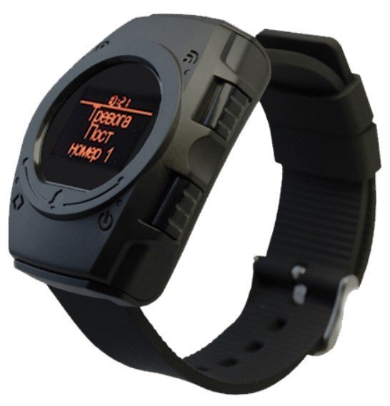 - четыре кнопки управления (Вверх, Вниз, Выход, Ввод), предназначенных для перемещения по меню браслета и подачи тревожного сигнала;