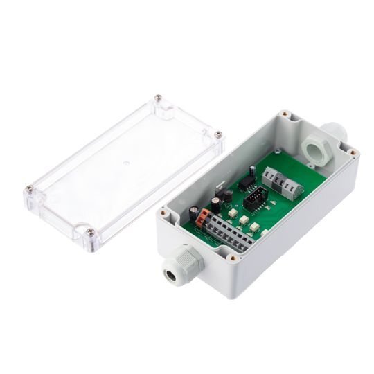 Внешнее устройство управления оповещателем УУО обеспечивает подключение оповещателя к дискретным выходам (например, реле) пожарных пультов или контроллеров управления. Использование оповещателя "ЭКРАН-ИНФО" совместно с УУО позволяет заменить до четырех отдельных оповещателей. УУО располагается вне взрывоопасной зоны. Есть два исполнения в герметичном корпусе (IP54) и в корпусе на DIN рейку размеров 35 мм и 32 мм.