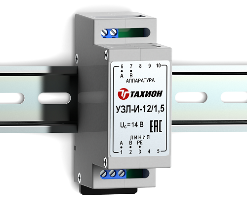 Устройство защиты интерфейсов с подачей питания УЗЛ-И-12/1,5 предназначено для защиты от импульсных перенапряжений (грозовых, электростатических разрядов и др.) оборудования промышленной автоматизации, диспетчеризации, систем безопасности, использующих 2х проводные линии интерфейса RS-485, RS-422, M-bus, CAN и их разновидностей. Устройство обеспечивает передачу питания 12 В DC по сигнальным парам с величиной тока до 1,5 А.