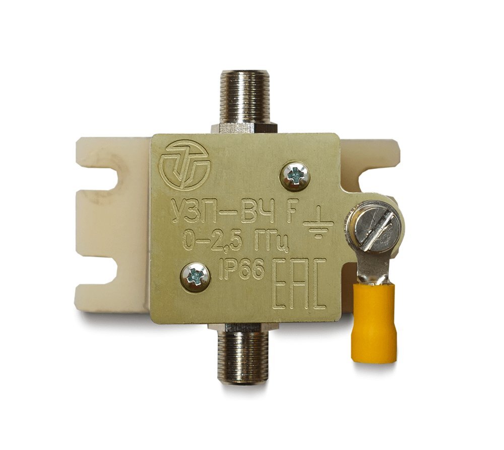 Устройство защиты высокочастотных цепей УЗП-ВЧ F предназначено для защиты оборудования, подключённого к коаксиальной линии с волновым сопротивлением 75 Ом, от наведенных напряжений, вызванных электромагнитными импульсами высоких энергий (грозовыми, электростатическими разрядами и т.д.).