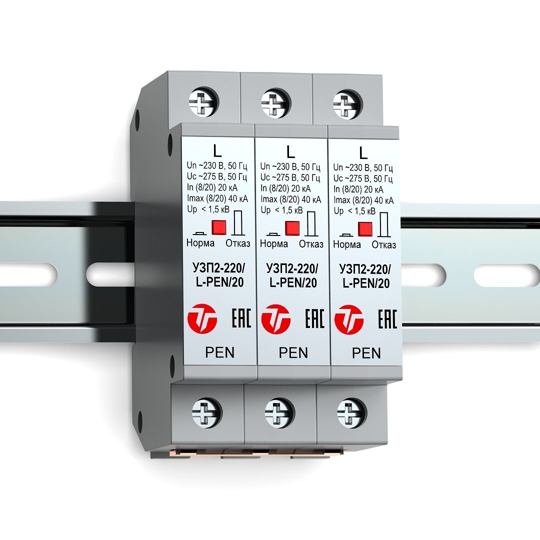 Устройство защиты электрооборудования распределительных сетей 220 (230) В AC от импульсных перенапряжений, комплект УЗП2-220К/3L-PEN/20 (далее изделие) предназначено для защиты оборудования, подключённого к линиям электропитания переменного тока 220 (230) В, от наведенных напряжений, вызванных электромагнитными импульсами высоких энергий (грозовыми, электростатическими разрядами и т.д.).