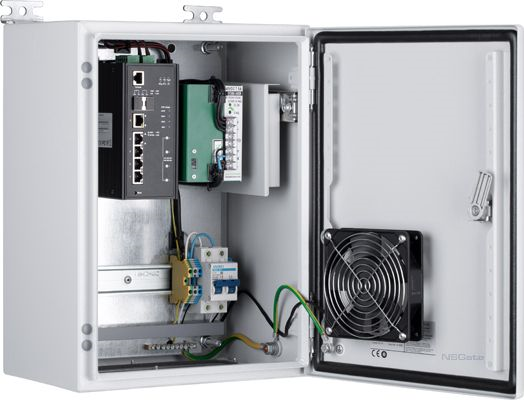 Узел доступа: NSB-3040F1 с вентилятором и оптическим кроссом, управляемый коммутатор 6 портовый промышленный; 4xRJ45 10/100/1000 Base- Мбит/с POE 90 Вт; Uplink 2xSFP-порта + 1хRG45 1G; БП 55В DC-360Вт; IP66; -40 …+60 °С; 300х400х210 мм. Контроль зависания IP-видеокамер.