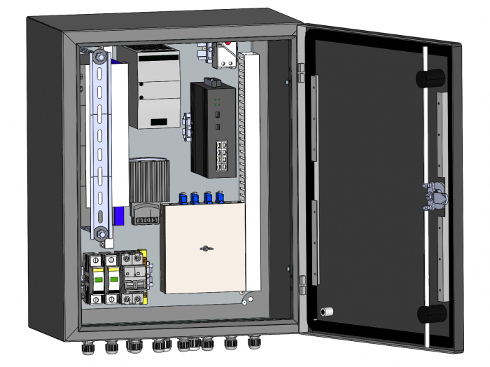 Коммутатор уличный сетевой 10 портовый с РоЕ, гигабитный, управляемый L2; 8xRJ-45 PoE 10/100/1000 Мбит/с, IEEE 802.3af/at, 2xSFP Uplink 1000 Мбит/с; PoE бюджет до 240 Вт; вариант работы РоЕ А 1/2 (-), 3/6 (+); дальность передачи по PoE до 100 метров; в комплекте оптический кросс на 8 LC разъемов, обогреватель, термостат, ИБП, 4хАКБ 12В 7Ач , гермовводы 11 шт, 2 УЗИП; грозозащита до 6кВ; AC 230В, 550Вт; IP66; -60... +60°C; 500х400х250 мм.