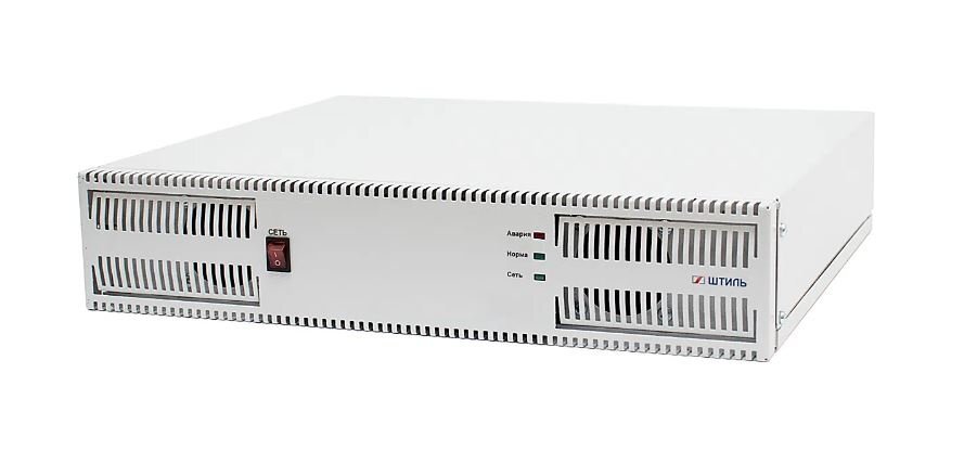 Внешнее зарядное устройство BСR-72-12 предназначено для увеличения зарядного тока встроенного зарядного устройства модели однофазного ИБП «Штиль» SR1102L мощностью 2 кВА. Изделие представляет собой металлический контейнер, использующийся для установки в 19-дюймовую стойку или телекоммуникационный шкаф. Зарядное устройство имеет схожие размеры и дизайн с источником бесперебойного питания, что позволяет его компактно разместить рядом с ИБП, образуя единую систему электропитания.