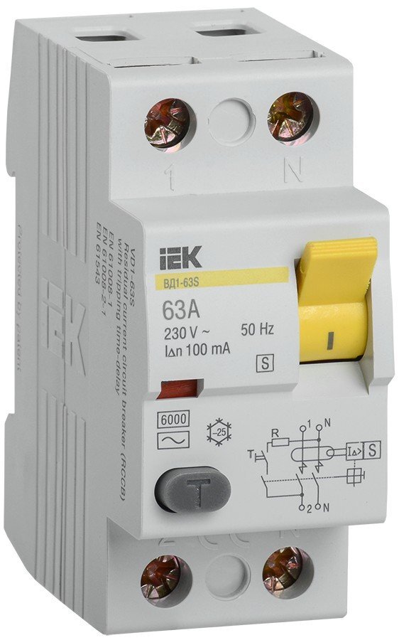 Выключатели автоматические, управляемые дифференциальным током, без встроенной защиты от сверхтоков, функционально не зависящие от напряжения сети, бытового или аналогичного применения с выдержкой времени отключения типа ВД1-63S предназначены для автоматического отключения питания, в случае возникновения дифференциальных токов утечки, в однофазных и трехфазных электрических сетях переменного тока номинальным напряжением до 400В.