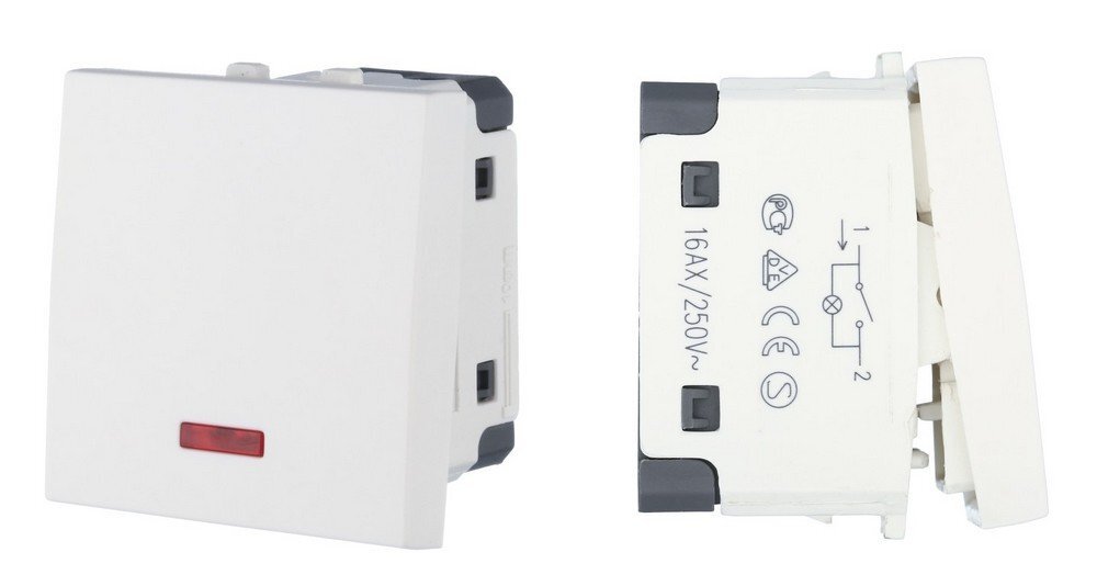 Выключатель Экопласт Выключатель с индикатором 45х45мм 16 A, 250 B, белый LK45 (850904)