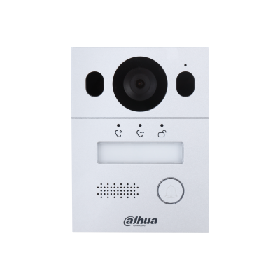 Вызывная панель 2-проводная, с разрешением камеры 2мп и CMOS сенсором, угол обзора по горизонтали 110°, панель из алюминия, уровень защиты IP65, IK07. Поддержка режима "Ночь" и голосового оповещения. Групповые вызовы. Видео и аудио сообщения. Удаленный доступ через мобильное приложение DMSS. Питание: через 2-проводной контроллер; Выход питания: 12В, 200мА