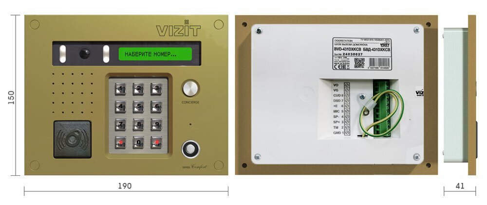 Используется совместно с блоком управления БУД-420 как составная часть многоквартирных домофонов VIZIT (серия 400)