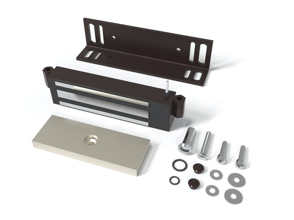 Замок электромагнитный для стальных дверей со стальной рамой, сила удержания 250кг, 9-15VDC, 0,6А, 7,2 Вт, встроенный модуль перемагничивания, монтажный комплект, уголок 40х50х4мм. Корпус из стали. -40…+45°C. Цвет корпуса (CA)- медный антик, магнит: 120х38х26 мм, пластина: 125х45х11,2 мм.