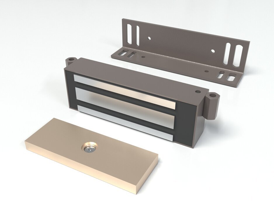 Замок электромагнитный 300кг, 12VDC, 0,5А, встроенный модуль перемагничивания, монтажный комплект, уголок 40х50мм., толщина уголка 4мм. Цвет корпуса Каменно-Серый.