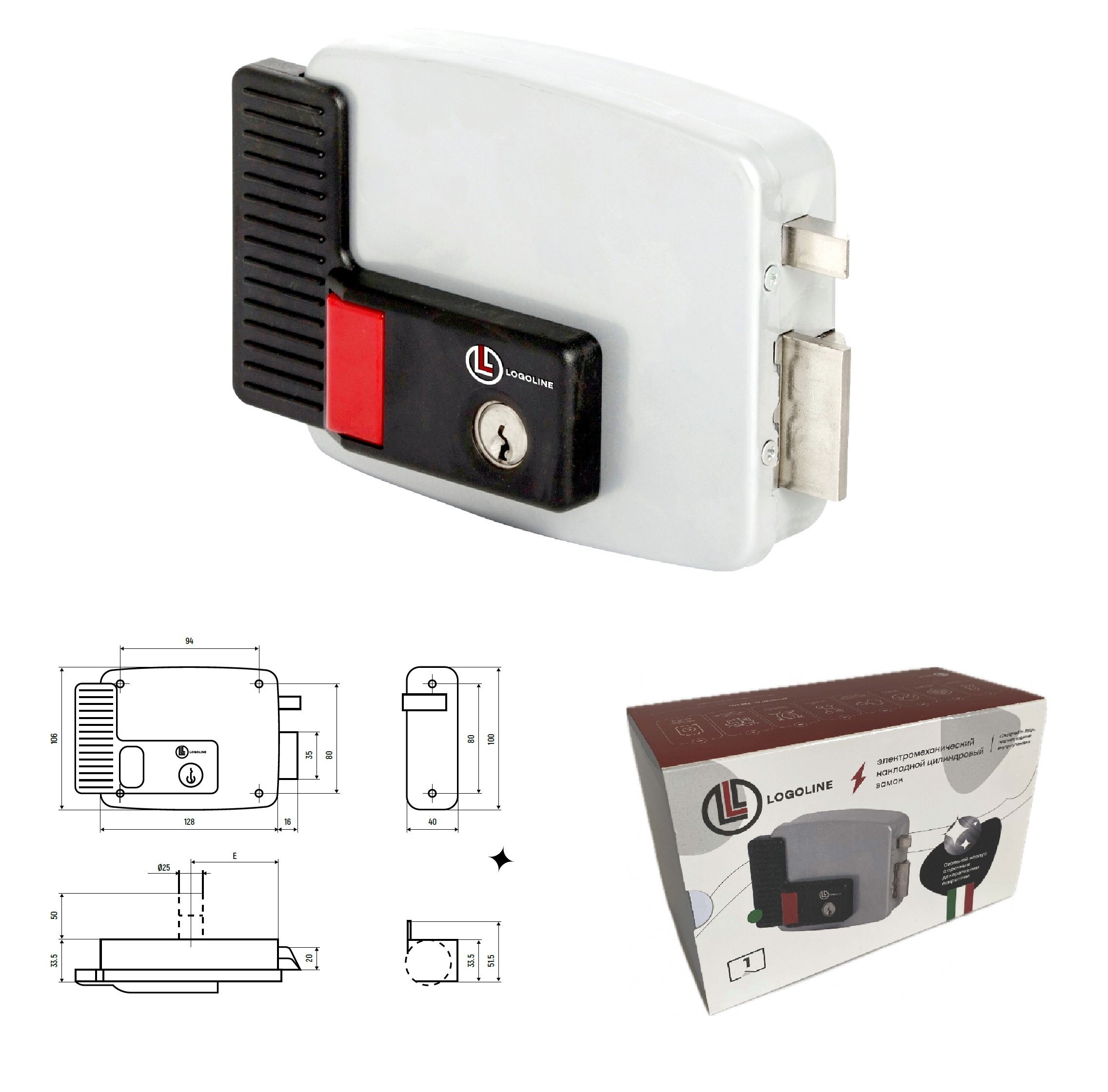 Тип установки Накладной | Габаритные размеры, мм 128х33,5х106 |