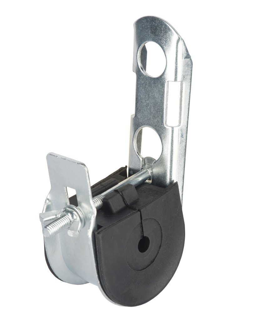 Поддерживающие зажимы используются для подвеса самонесущих оптических кабелей ADSS и кабелей типа “8” на промежуточных и угловых опорах воздушной линии электропередачи, связи, элементах зданий и сооружений при длине пролетов до 100 метров и углах поворота трассы до 25°. Поддерживающий зажим позволяет крепить кабель с диаметром от 5 до 8 мм NMF-AL-SM-T-8-4 (диаметр по изоляции) и предохраняет кабель от повреждений при сверхнормативной вертикальной нагрузке. Корпус и винты зажимов изготавливаются из оцинкованной стали, внутренняя втулка удерживающая кабель изготавливается из ультрафиолетостойкого полимера. Максимальная рабочая нагрузка составляет 4 кН.
