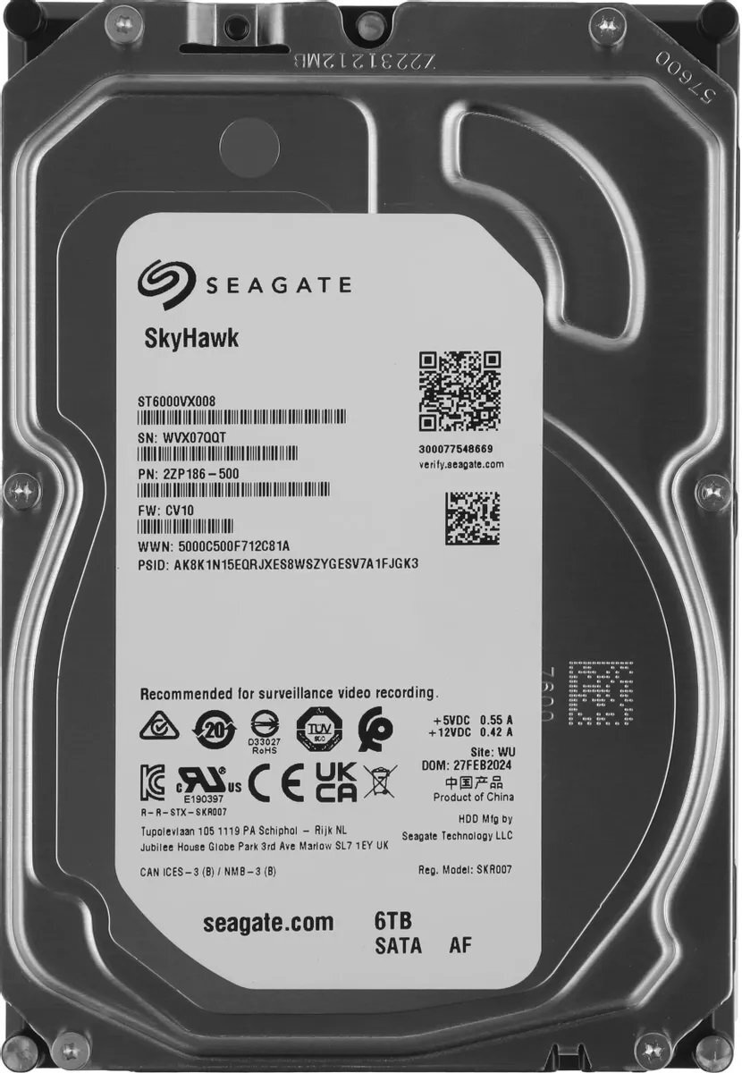 Жесткий диск (HDD) для видеонаблюдения Seagate HDD 6000 GB (6 TB) SATA-III Skyhawk (ST6000VX008)